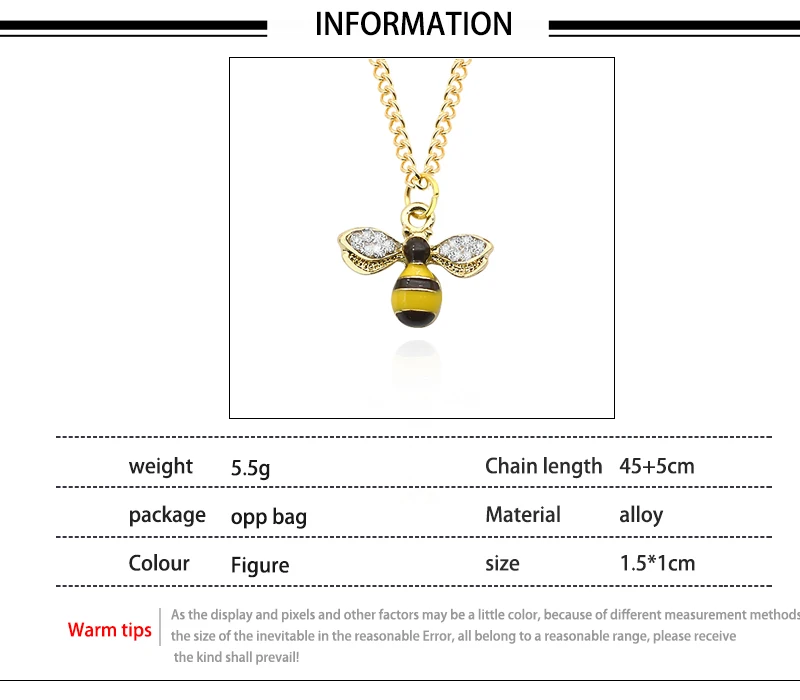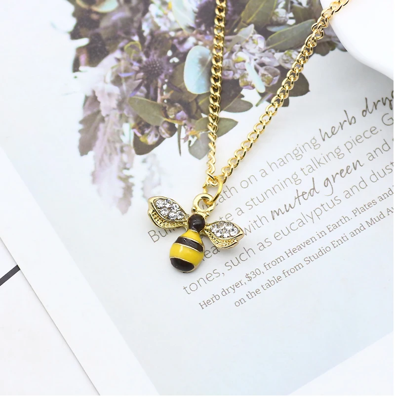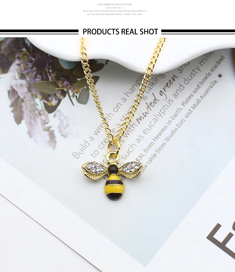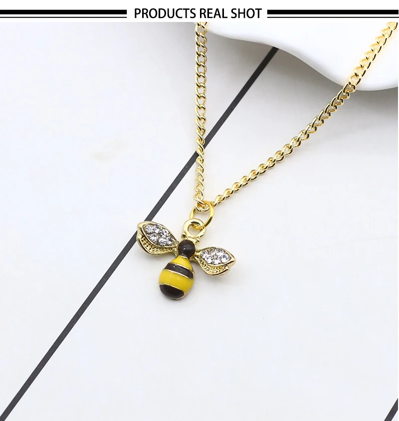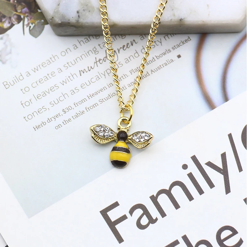 Cartoon Cute Bee Necklace For Women Girls Lovely Crystal Animal Wings Long Chain Yellow Pendant Necklaces Jewelry Child Gifts